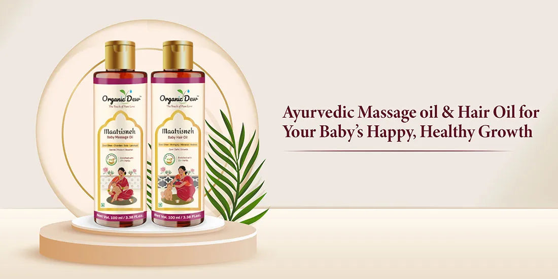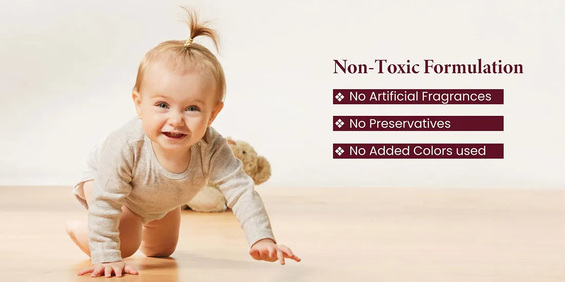 Nourish your little one with our 100% natural baby care product range inspired by Ayurveda, prioritizing their good health. Our baby care products have no added fragrance and colours, ensuring the preservation of their natural charm. Baby Massage Oil and Baby Hair Oil are toxin-free and have no mineral oils, offering peace of mind for you and your precious one.