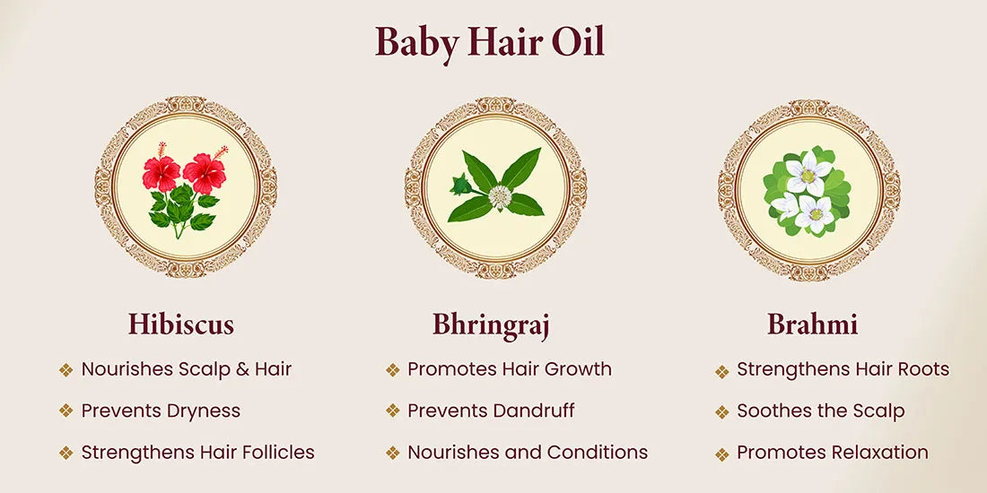 A. Our baby oils are made with a blend of natural ingredients, including Desi Ghee, Chandan, Bala, and Lakshadi, known for their nourishing and moisturizing properties. These oils are ideal for a baby’s delicate skin and scalp.