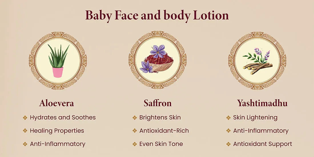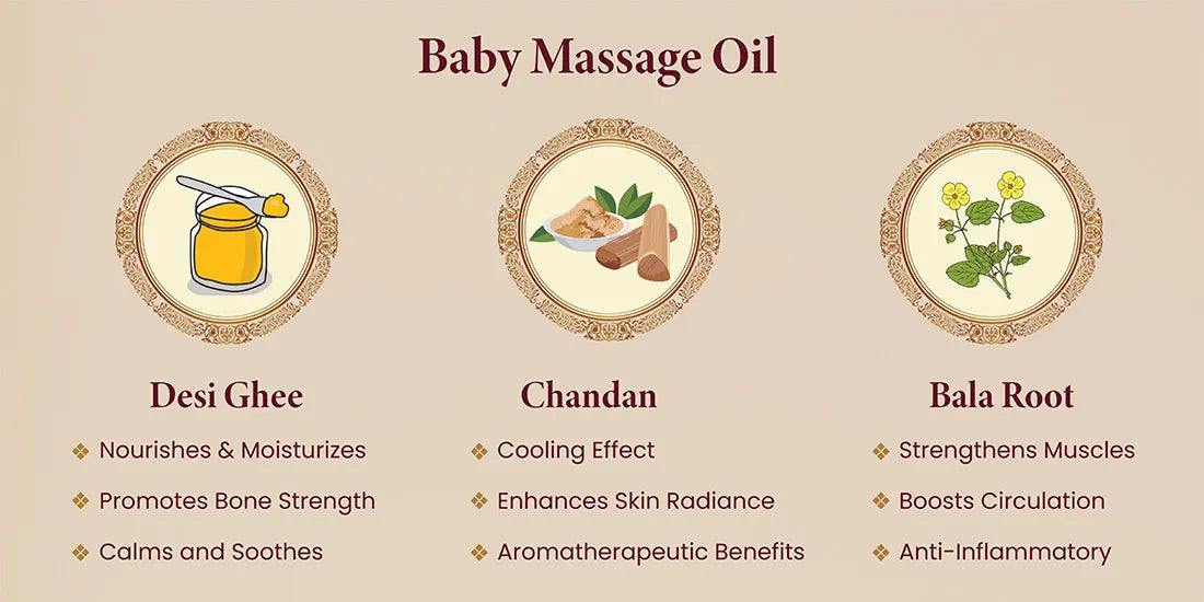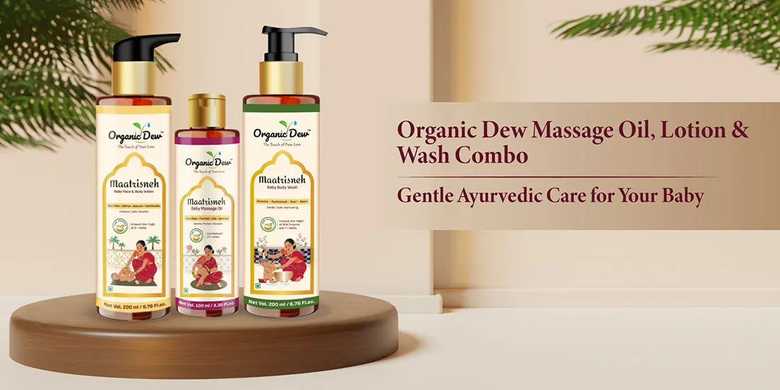 Nourish your little one with our 100% natural baby care product range inspired by Ayurveda, prioritizing their good health. Our baby care products have no added fragrance and colours, ensuring the preservation of their natural charm. Massage Oil, Body Wash and Body Lotion are toxin-free and have no mineral oils, offering peace of mind for you and your precious one.
